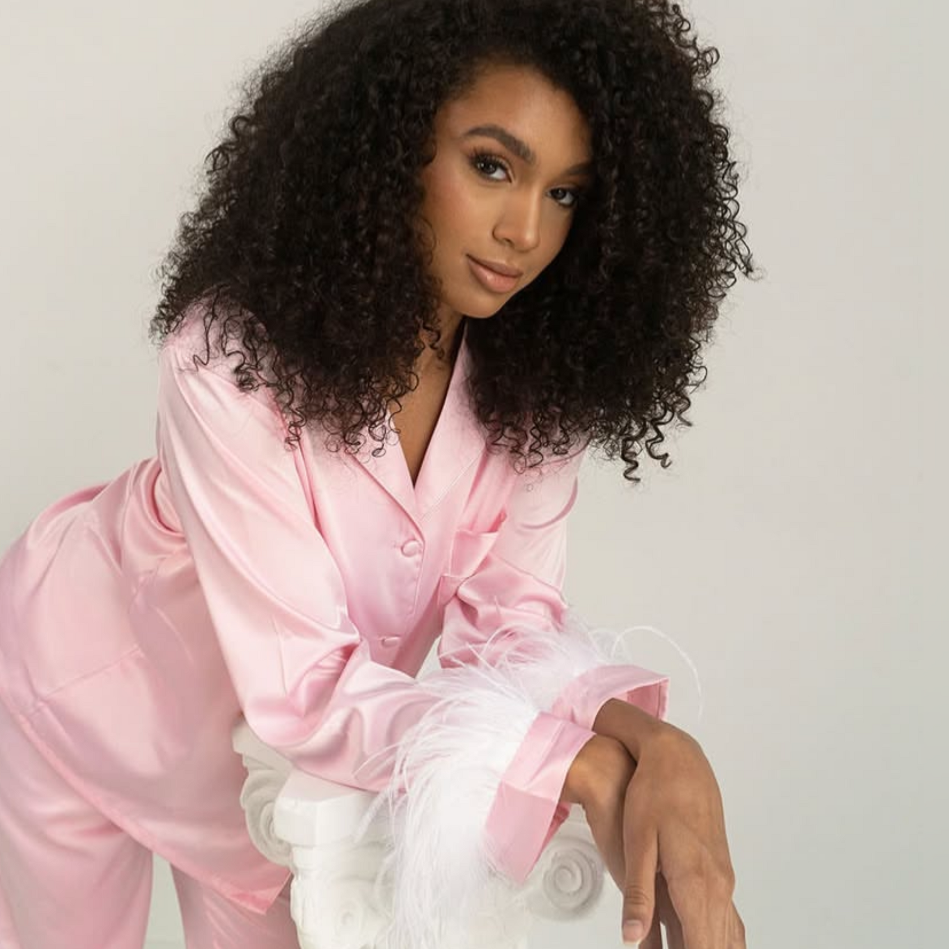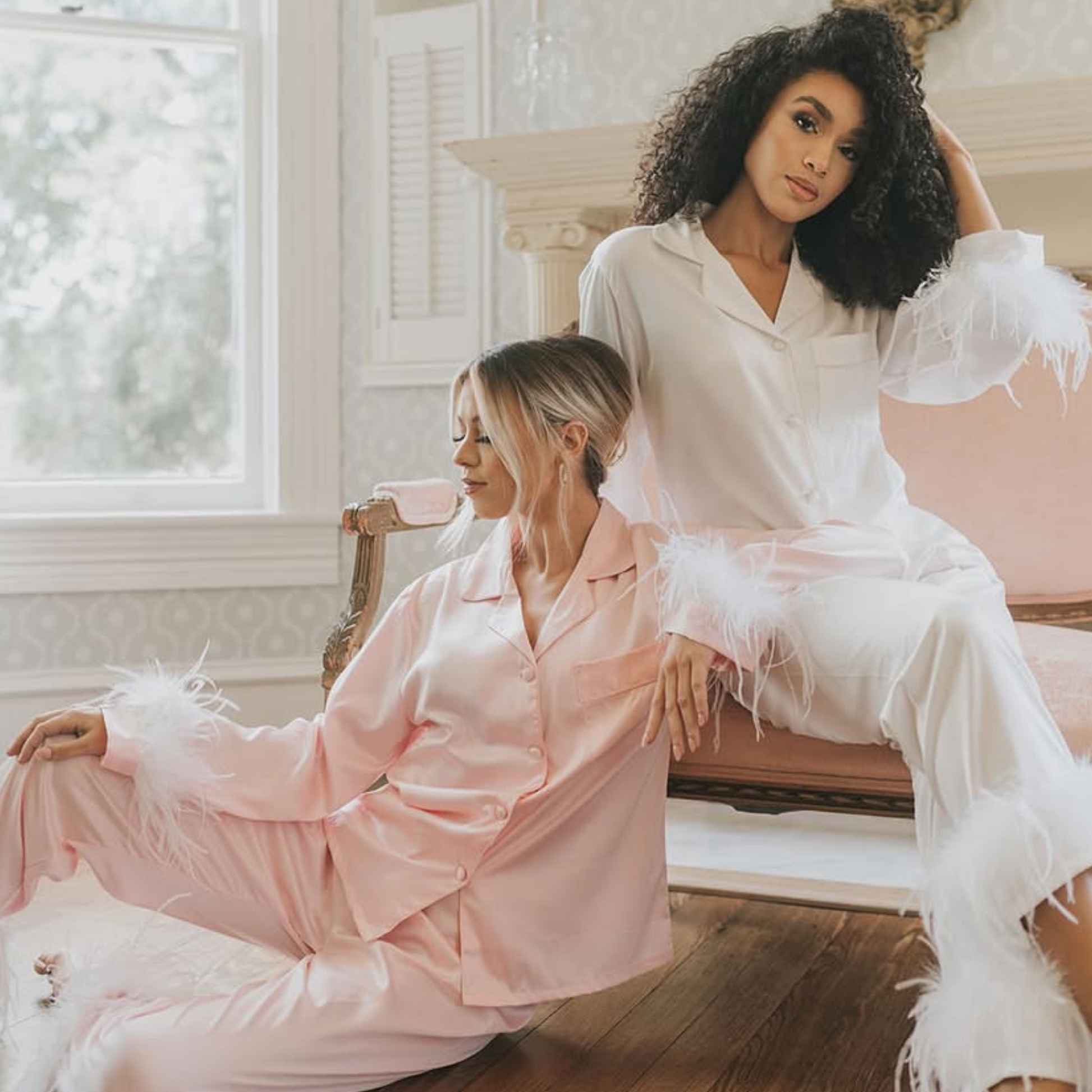 Handmade to perfection and designed with you in mind. The iconic ostrich feather trimmed pajamas feature a 4-button closure and single patch pocket. An elastic band on the pants and relaxed silhouette make these perfect for evening wear and daytime lounging.