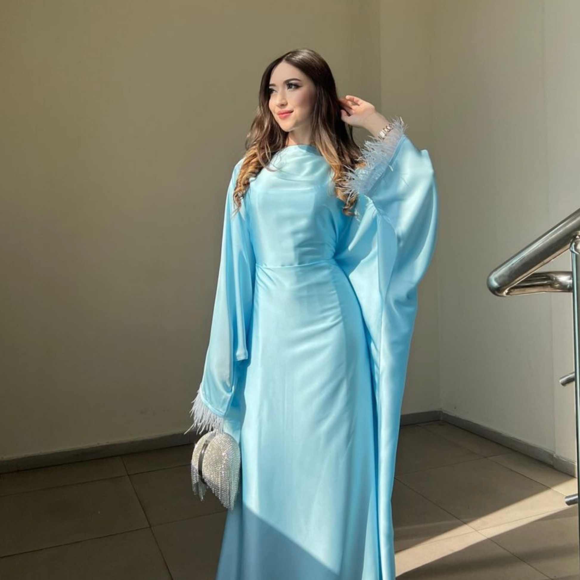 Sky Blue Satin Kaftan